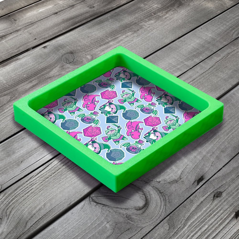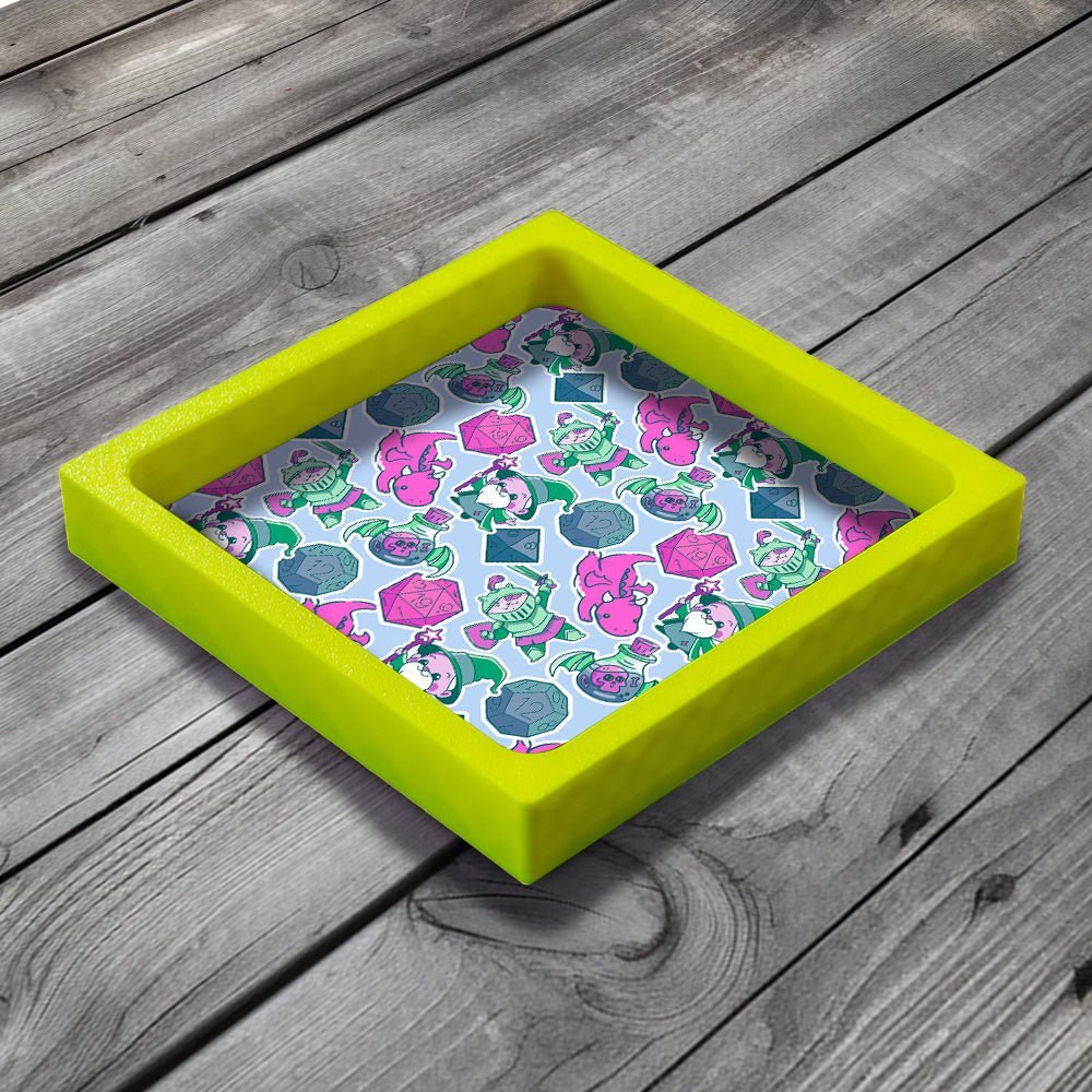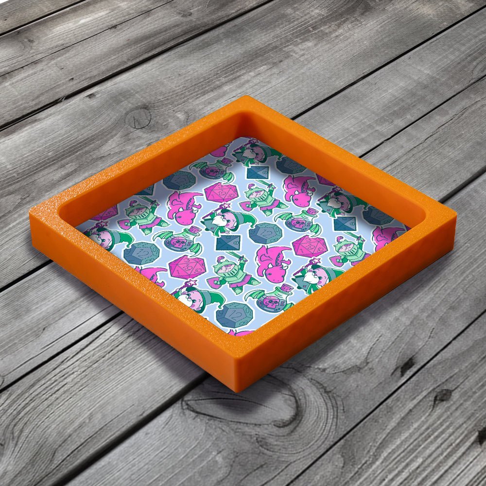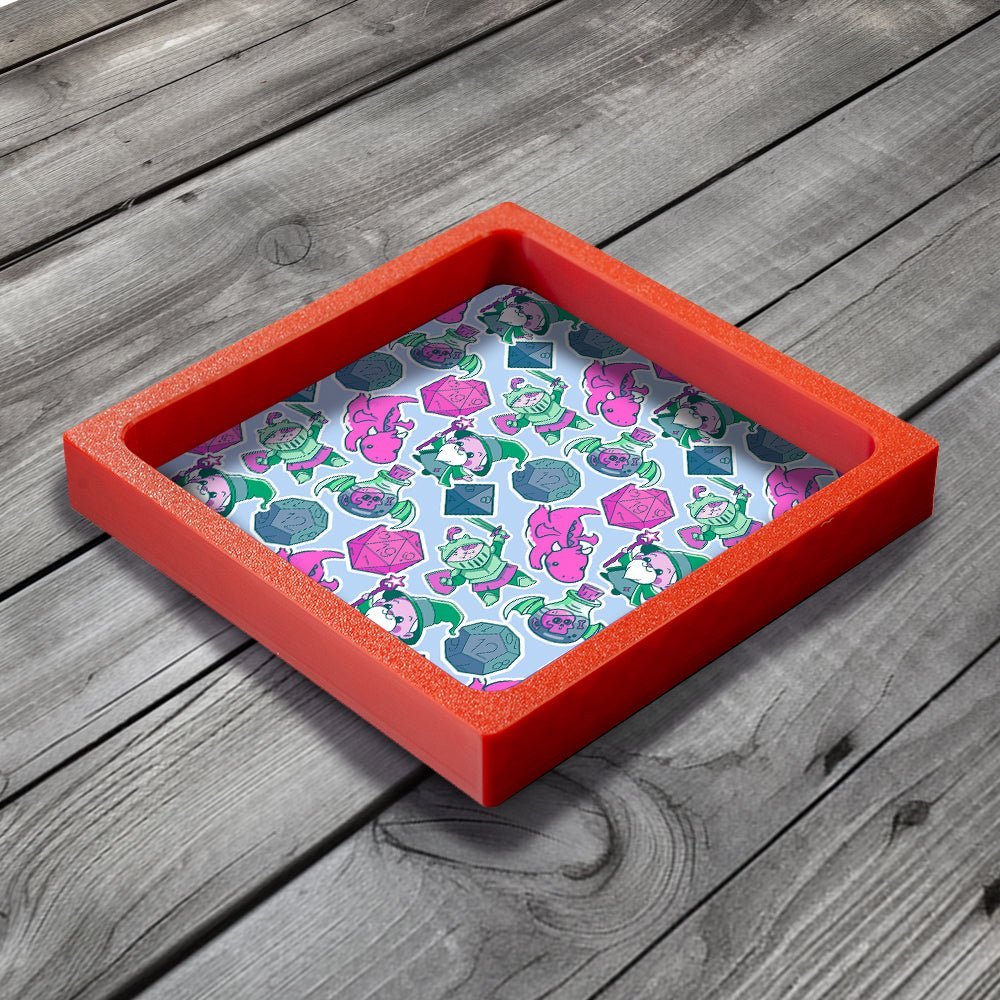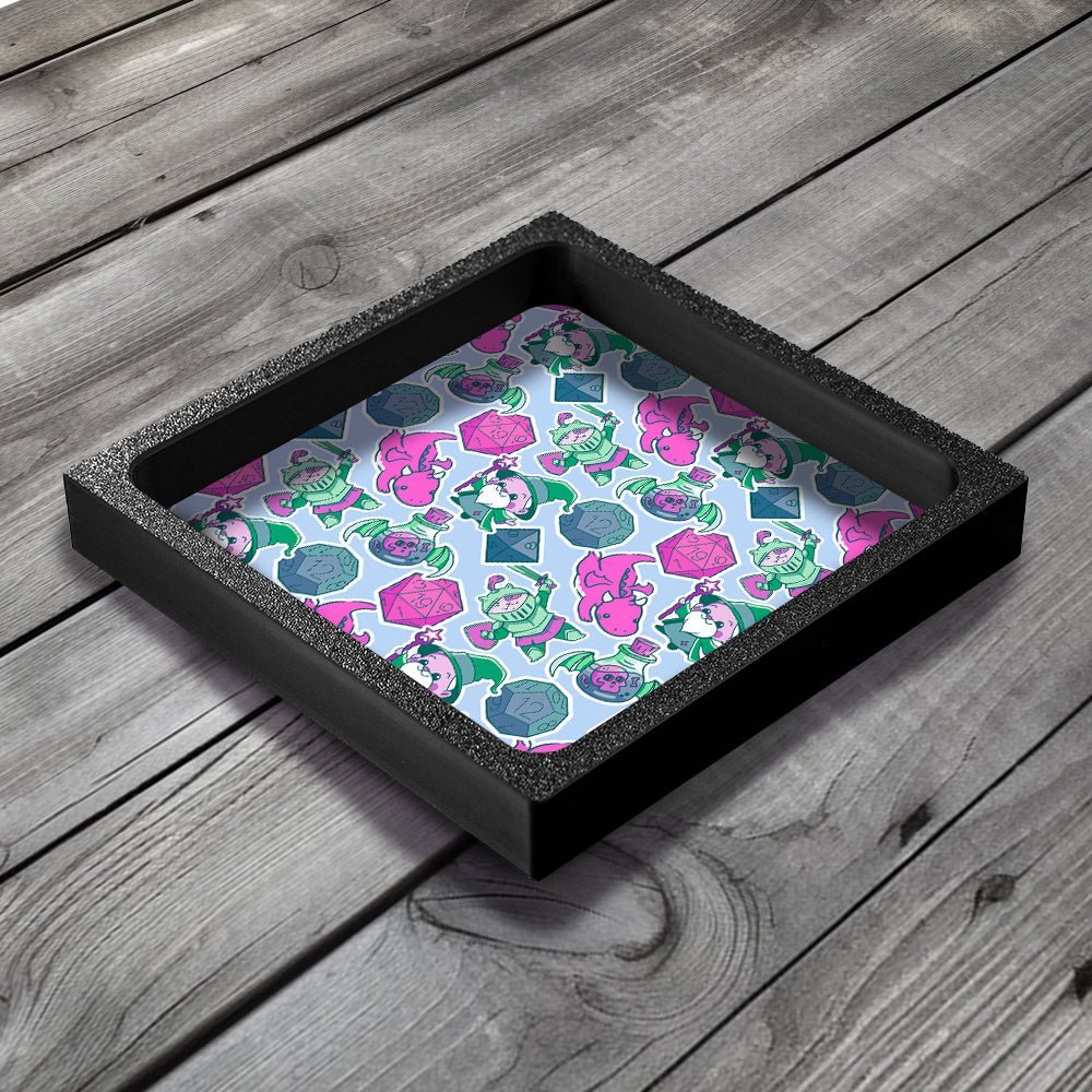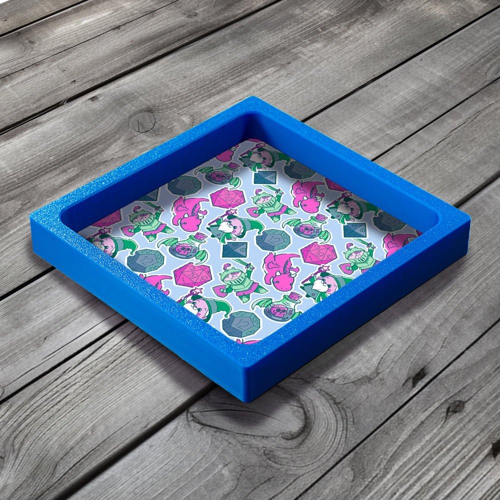 This Dice Tray is the perfect gift for fans of Tabletop Gaming, Board Games, Wargames and DnD. Our unique design combines a PLA plastic frame with a lined neoprene surface with MDF backing board, giving a lightweight but solid dice tray.