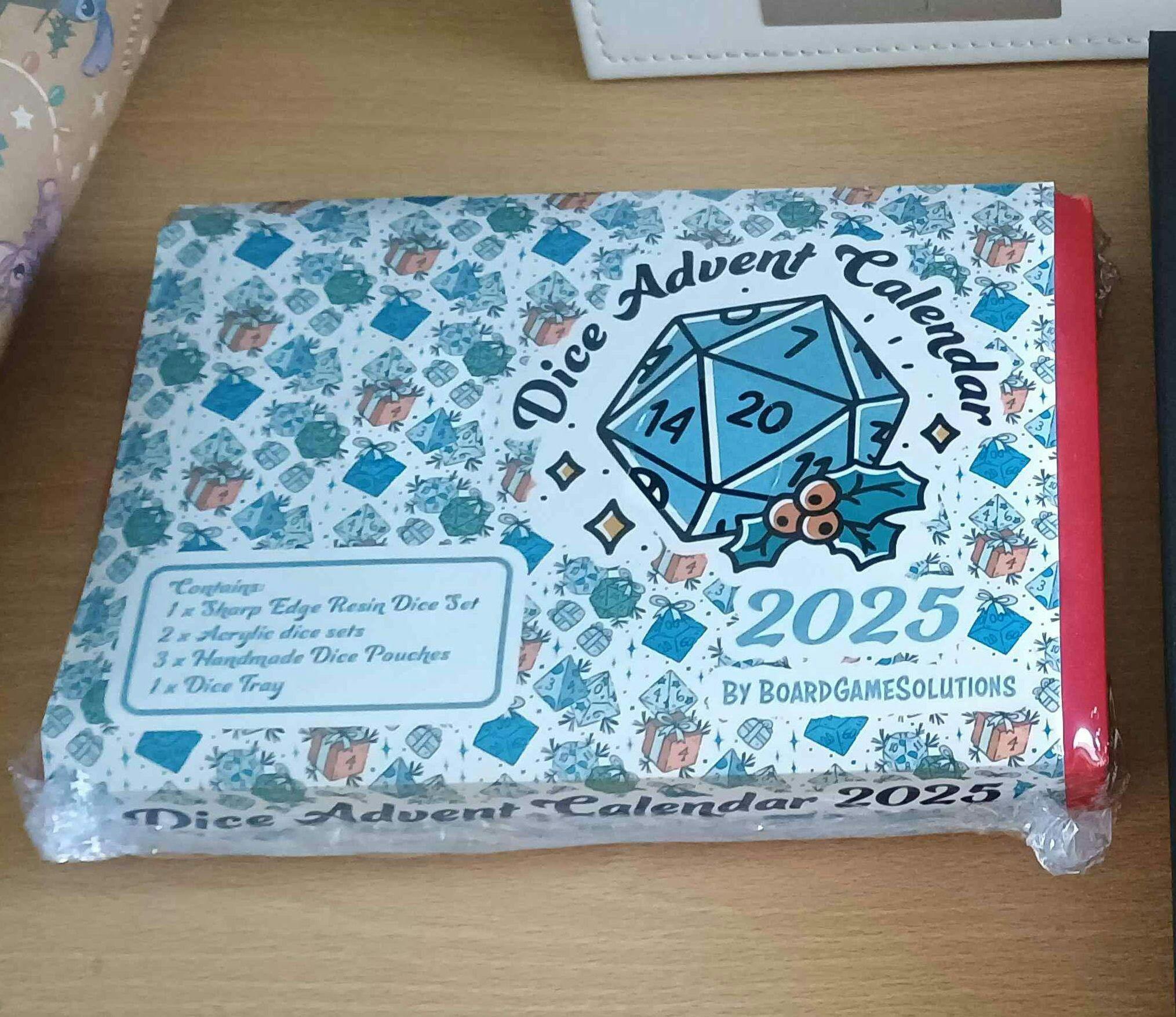 Each Calendar is comprised of 3 x RPG D&D Set of 7 Dice (1 Sharp Edge and 2 Acrylic), 3 x Dice Pouches (e