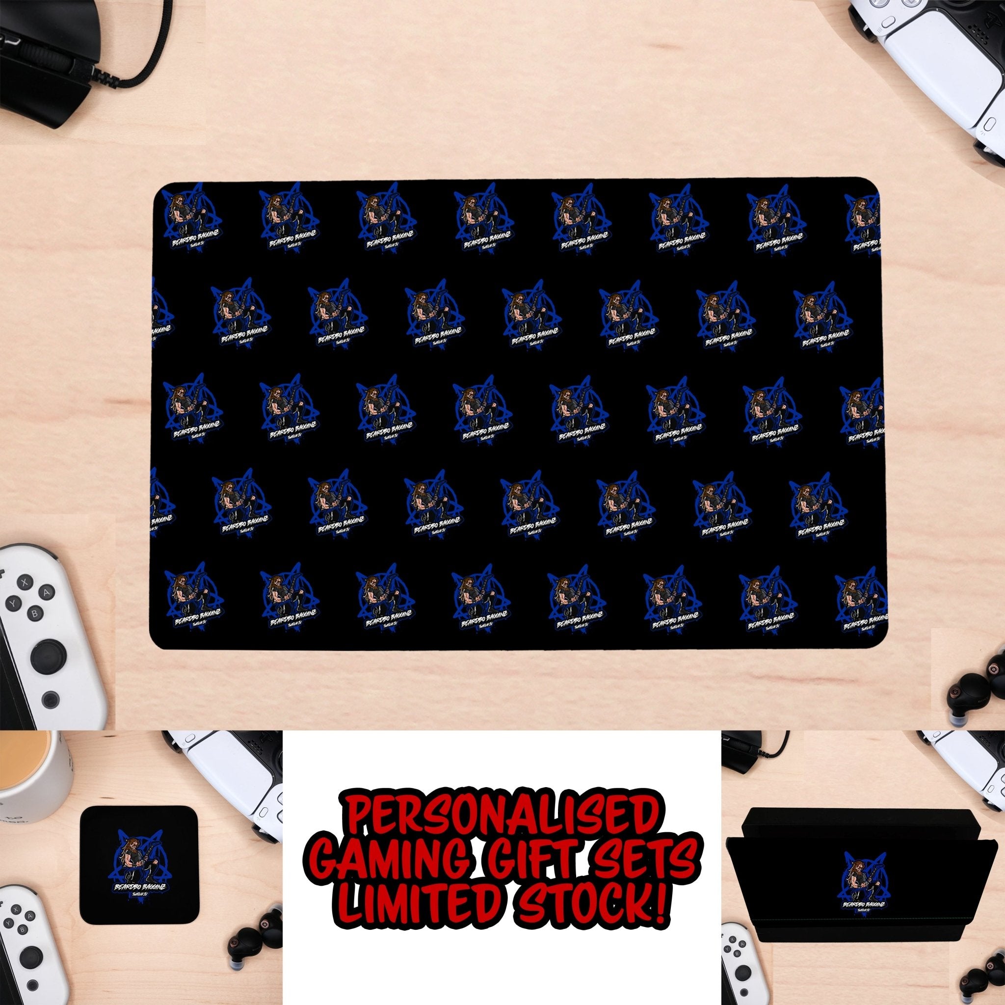 Personalized with your name and logo, this gift set comprises of large desk mousepad, drinks coaster and Nintendo Switch Dock Cover, all matching in the colour and branding!